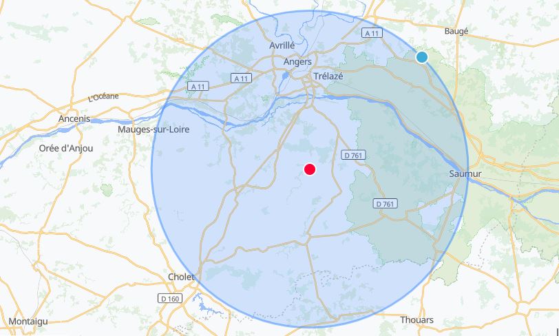 Je me déplace dans le triangle Angers – Saumur – Cholet (environ 35km autour de Bellevigne en Layon)